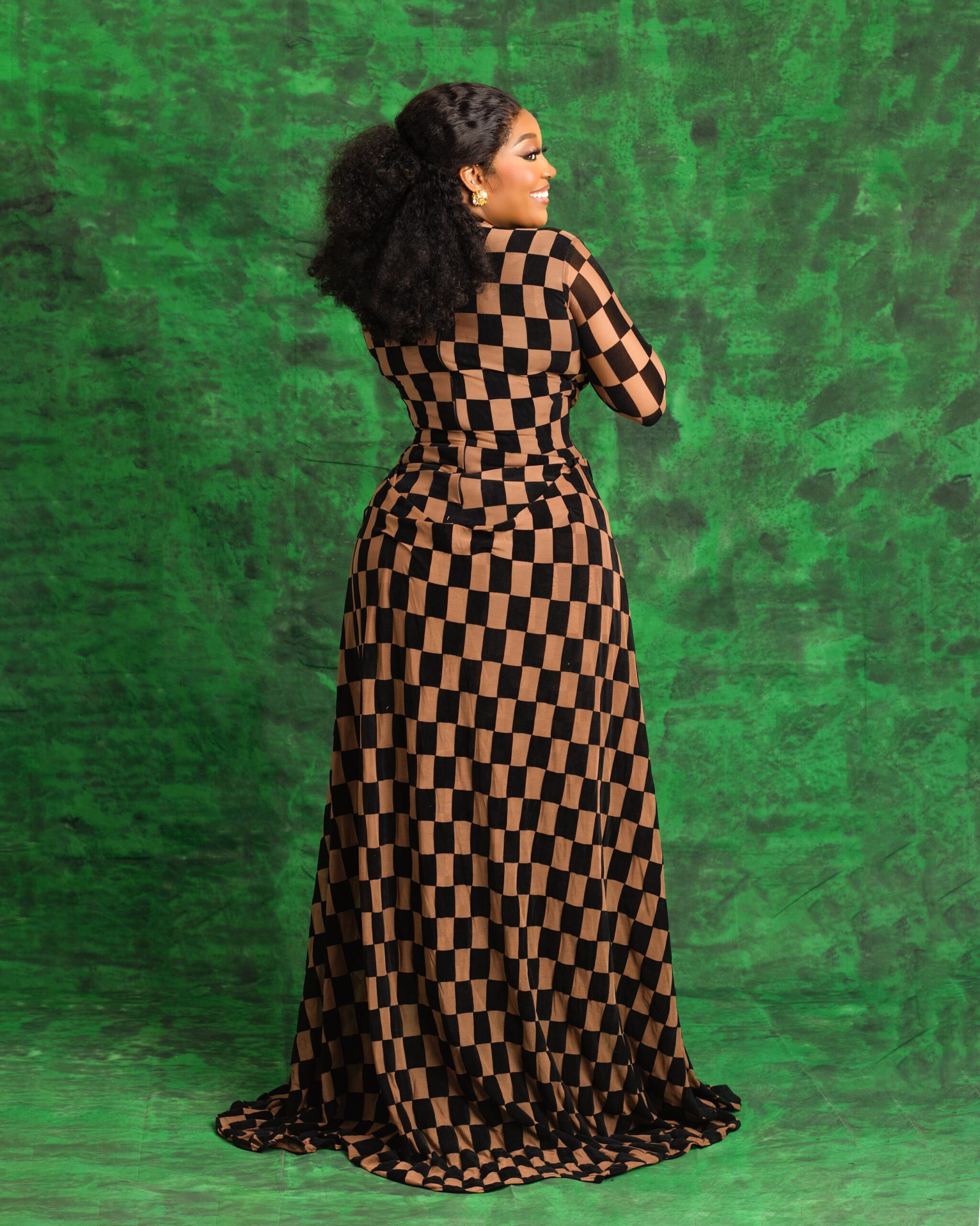 NONNISTICS BROWN CHESS BOARD PRINT DRESS