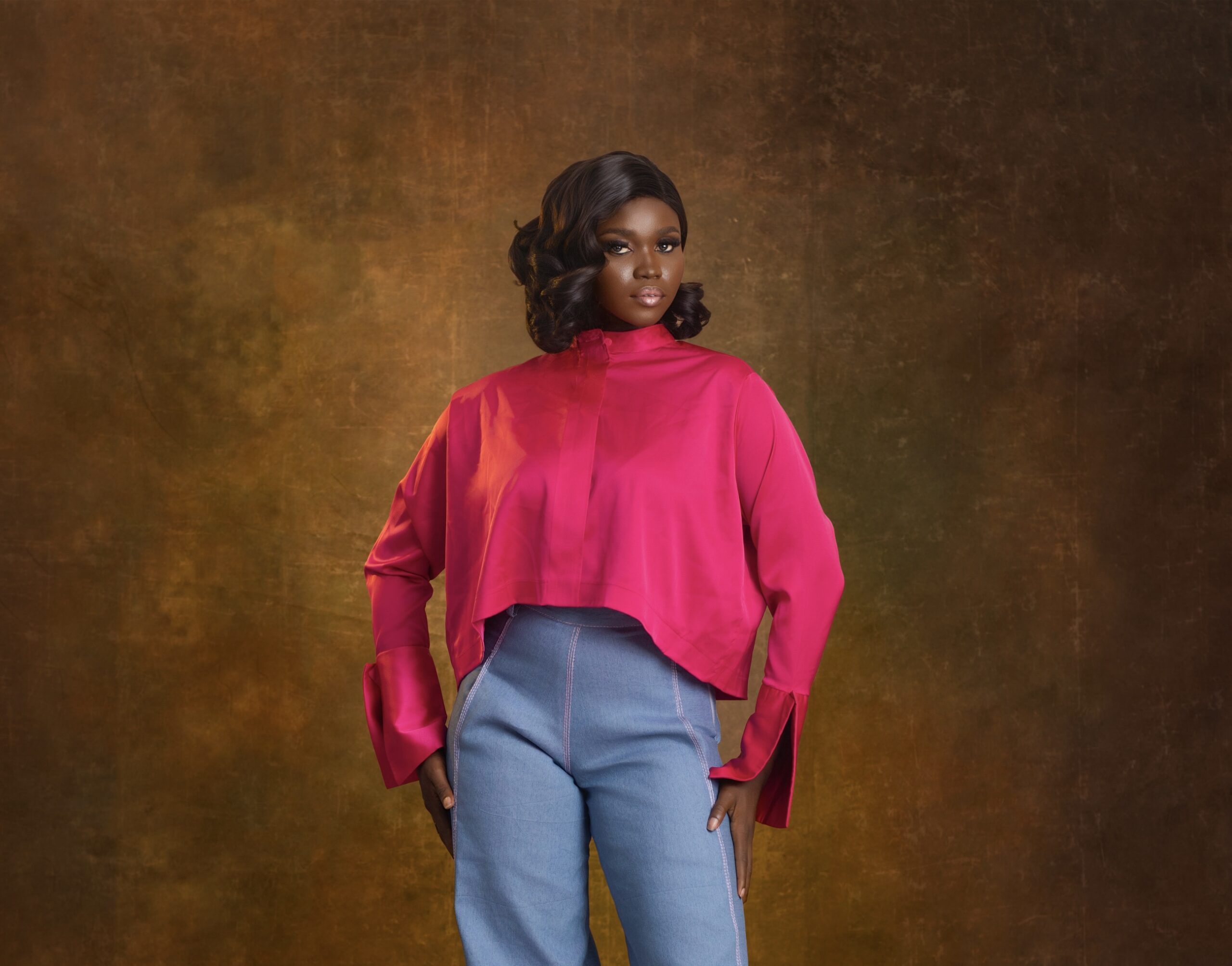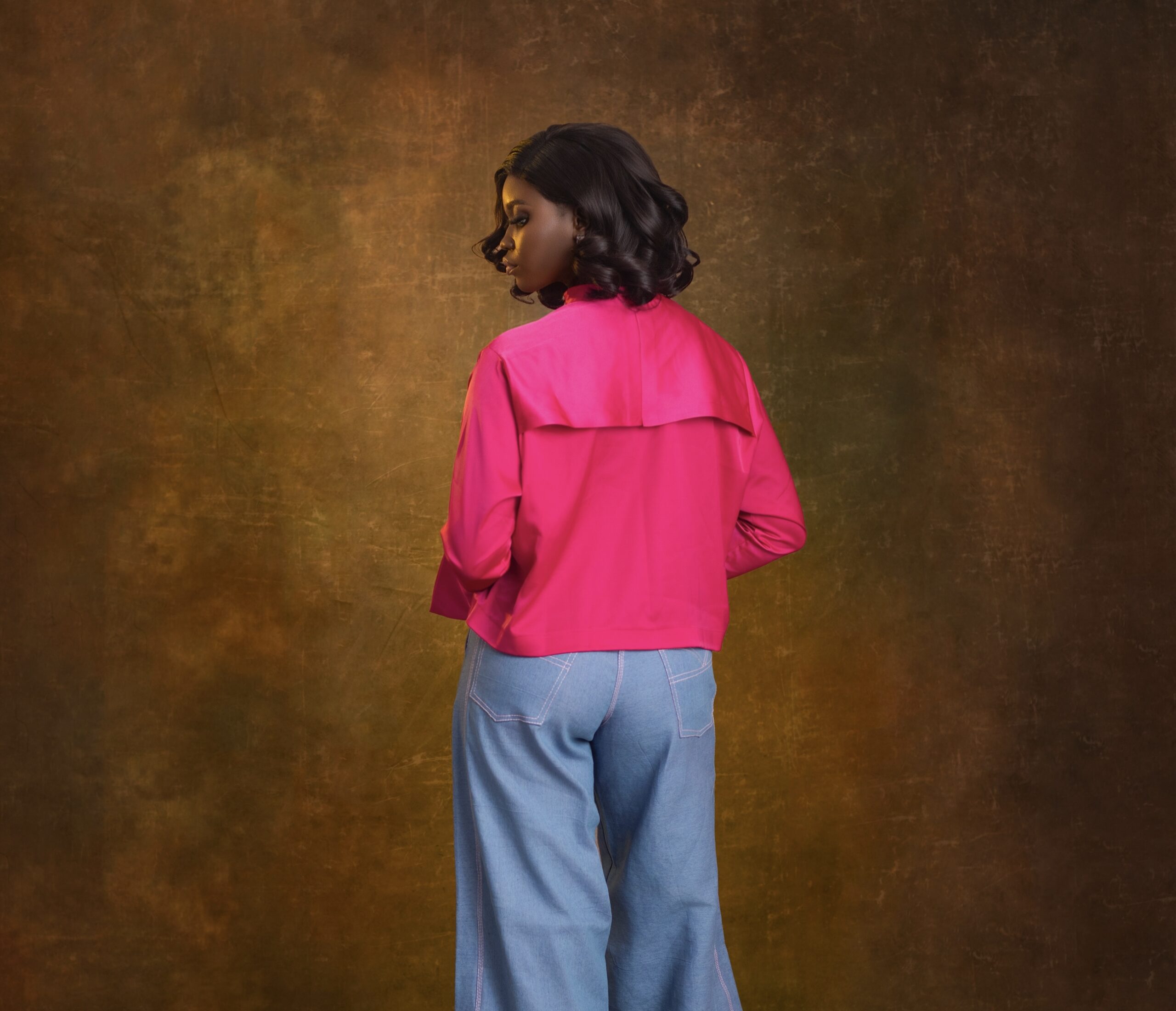 The Fervor shirt is a striking high-neck blouse crafted in luxe, vibrant fuchsia satin. The asymmetrical cut and flared sleeves add high-fashion drama to this effortlessly stylish piece. Perfect for elevating both jeans and tailored bottoms.