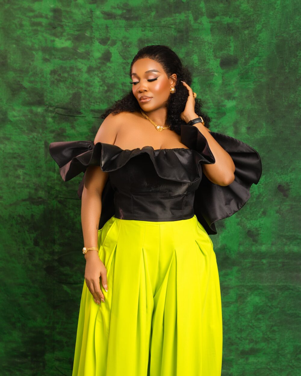 The Peplum Luxe Bustier offers a flattering, structured fit with an off-shoulder neckline and peplum pleated sleevesthat wrap around to the back for a dramatic, elegant look. Perfect for any special occasion, this off-shoulder bustier topcombines sophistication with bold style. Pair with skirts or trousers for a standout ensemble.